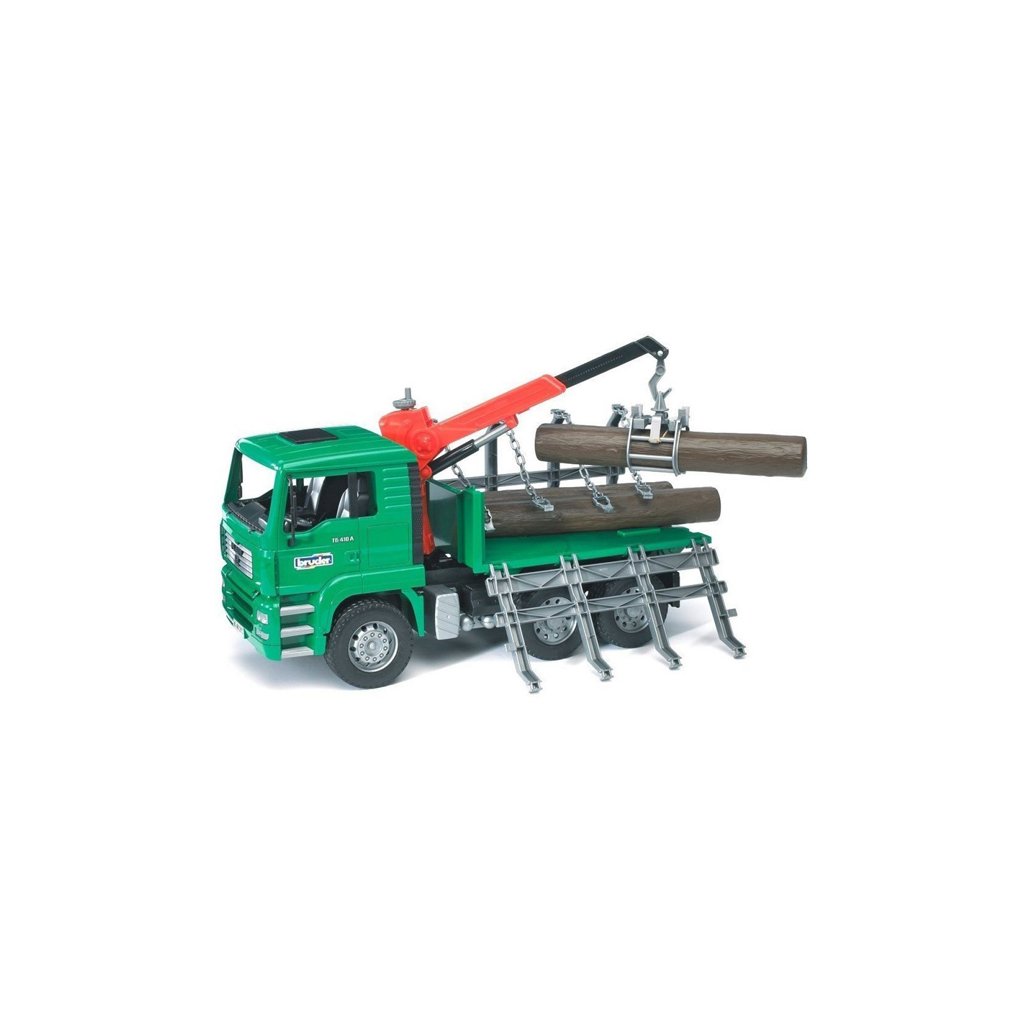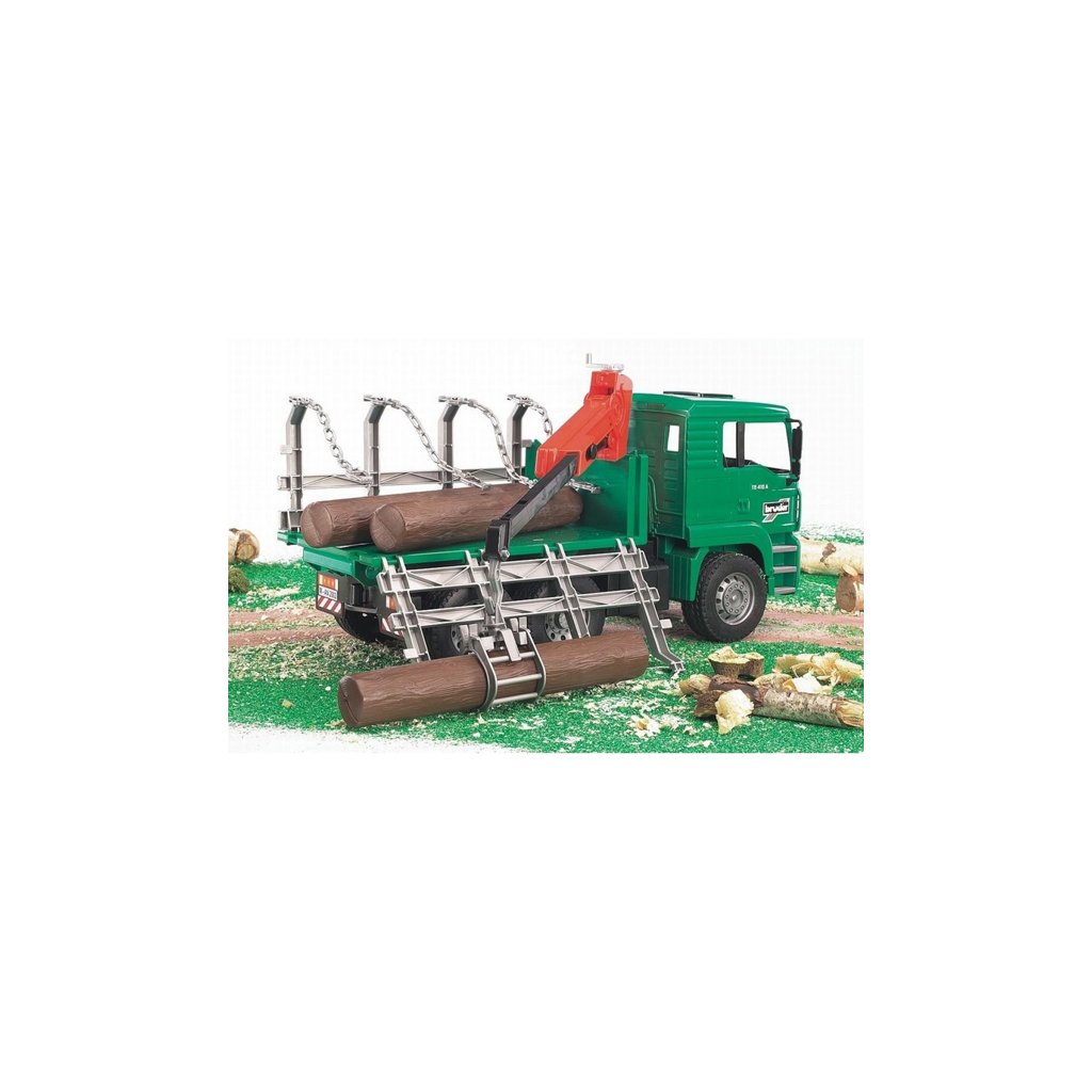 BRUDER 2769 - Nákladní auto MAN - přepravník dřeva. Nákladní auto značky MAN na přepravu dřeva s ramenem, možnost nakládání, skládání, odklopení ramena, vyklápění korby. Obsahuje tři jakoby dřevěné klády.Věk: 3+