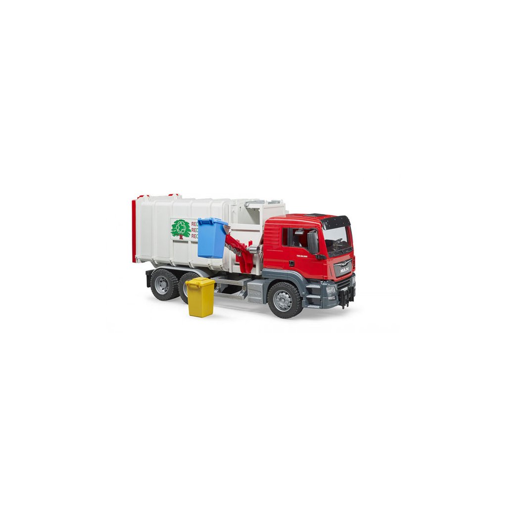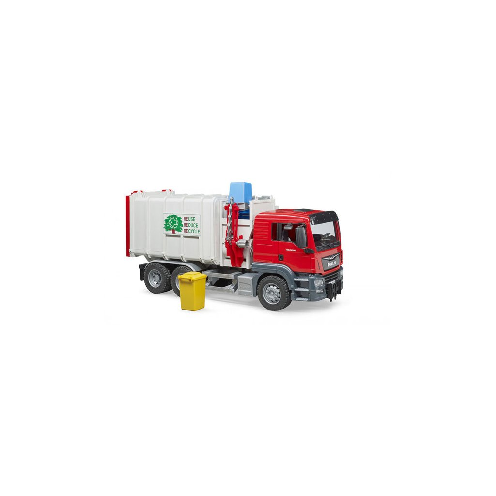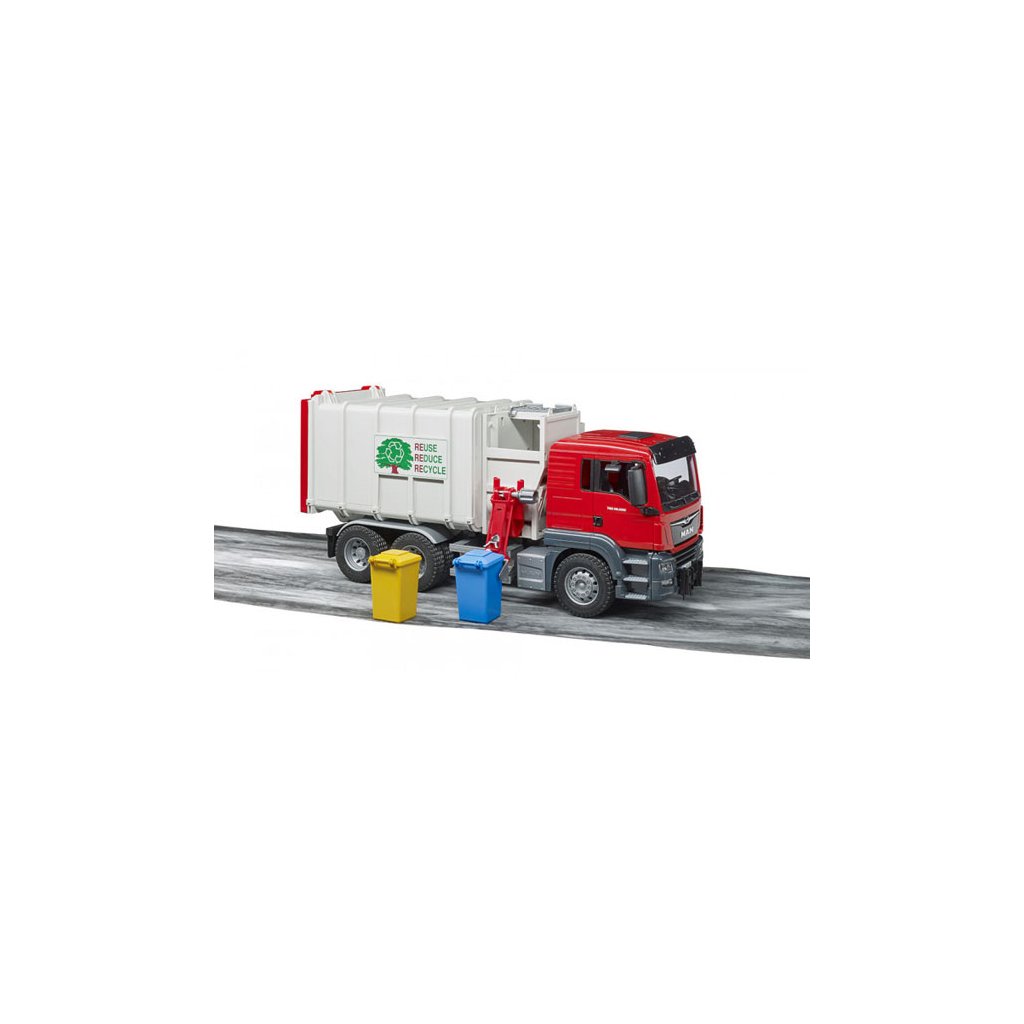 Bruder 3761 Popelářské auto MAN TGSBruder 03761 Nákladní auto MAN - popeláři v šedo-červeném provedení má spoustu funkčních prvků, např. sklopnou nástavbu s pohyblivým šnekovým dopravníkem, sklopná zrcátka a pohyblivé rameno umožňující vyprazdňování popelnic do nástavby.Snad každý malý kluk chtěl být někdy popelářem. Umožněte to tomu vašemu s tímto stylovým popelářským autem.