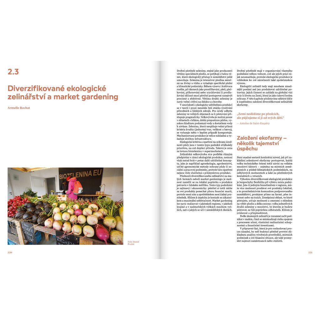 Encyklopedie ekologického zemědělství představuje souhrnný přehled a odborný popis většiny zásadních zemědělských témat z perspektivy udržitelnosti. Obsah této rozsáhlé publikace není uspořádán abecedně, ale tematicky – v souladu se strukturou výuky na zemědělských školách. Jednotlivé kapitoly pojednávají o půdě a jejím významu, hnojení, ochraně rostlin, pěstování hlavních plodin včetně trvalých kultur či živočišné produkci. Věnují se také nadstavbovým otázkám, jako jsou dopady klimatické změny na zemědělství a jeho proměny, sociální a městské zemědělství, kvalita potravin či interakce mezi zemědělstvím a životním prostředím, například v oblasti zadržování vody, zvyšování biodiverzity či odolnosti krajiny. Je vhodná také jako studijní materiál pro výuku ekologického zemědělství, environmentálních principů a vztahů mezi zemědělstvím a ochranou životního prostředí. Tyto tematické okruhy nejsou relevantní pouze pro zemědělské školy a univerzity, ale i pro další vzdělávací programy zaměřené na regionální rozvoj, management krajiny a také státní správu a samosprávu.