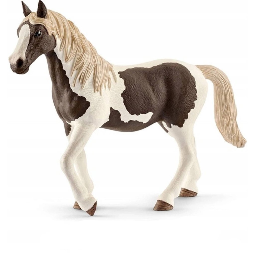 Koně pinto byli velmi oblíbení u indiánů, protože byli díky své skvrnité srsti dobře maskovaní. V létě upřednostňovali plaváky, červené bělouše a ryzáky. V zimě jezdili na bílých koních pinto. V zasněžené krajině bylo těžké je odhalit. Figurka je vyrobena z kvalitního gumového materiálu a je ručně malovaná. Rozměry zvířátka jsou 14,5 x 11,3 x 3,4 cm.Doplňkové parametry