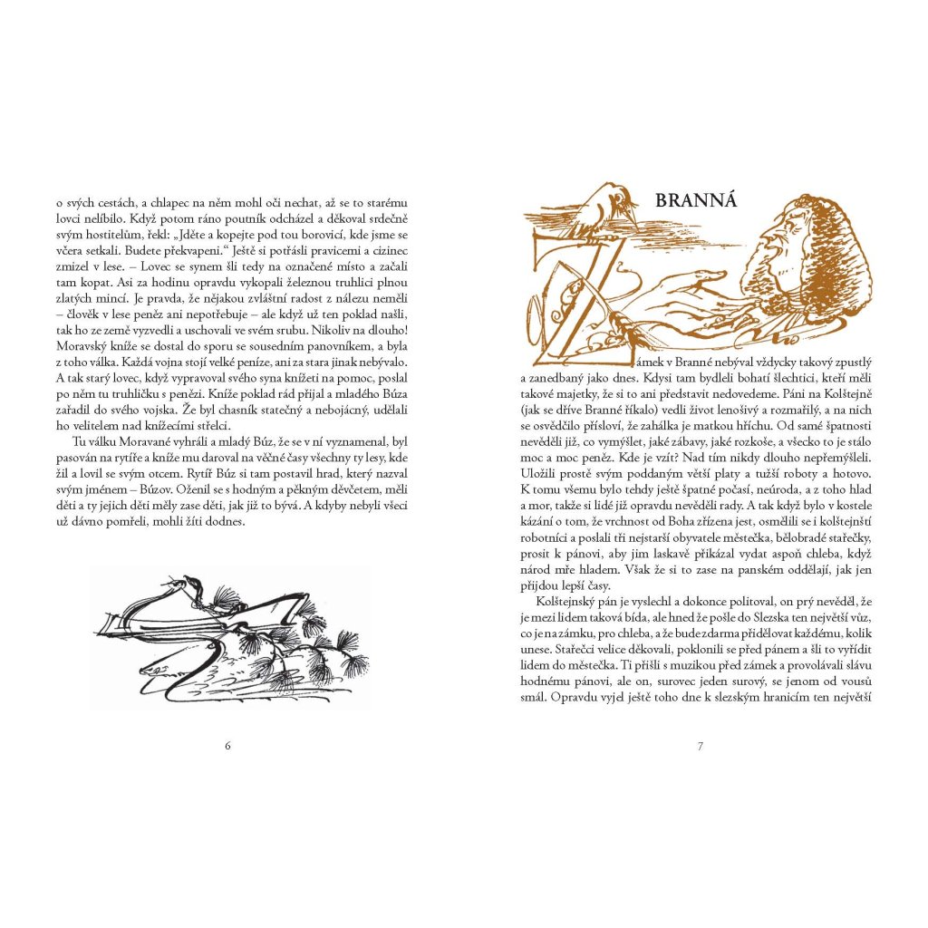 počet stran: 155 str, měkká vazba, rozměr: 170 x 235 mm Rok vydání 2017 Kniha je upraveným vydáním dříve vydané jedinečné publikace sběratele Bohumíra Štégera (1908 – 1985) z r. 1957, která vynikala výjimečným poetickým slohem a elegantním obrazovým doprovodem. To vše při vysoké estetické úrovni zpracování. Poněvadž několik málo dochovaných výtisků prvního vydání stále silně poutalo pozornost čtenářů, rozhodl se editor a vydavatel pro nové, upravené vydání při úpravě několika málo faktografi ckých chyb. Podařilo se i zajistit původní nádherné ilustrace významného olomouckého výtvarníka Jeronýma Grmely (1926 – 1992). Obsahem je 47 poeticky podaných pověstí z Olomouckého kraje a 10 z kraje Moravskoslezského. Zahrnují tedy zejména Hanou, Lipenské Záhoří a Sudety. Další částí jsou aktualizované a zpřesněné přílohy, které uvádějí k jednotlivým pověstem zajímavé reálné konotace, které mohou s obsahem až nápadně souviset a oživují dojem z přečteného. Následující kapitolou knihy jsou zcela nově zpracované kulturně-historické dodatky, které informují o současném stavu památky, nejnovějších poznatcích o jejím vývoji i o základních údajích pro návštěvníky. Zcela nově je zařazena mapka všech pojednávaných památek.Doplňkové parametry