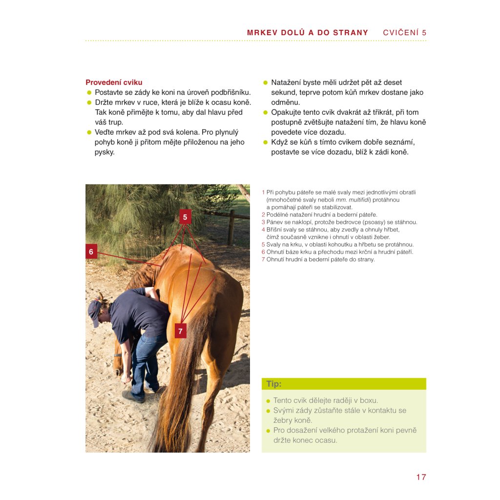 formát: 170 x 215 mm Strečink pro koně - Protahovací cviky ze země Úspěšná autorka knih o gymnastice koní Gillian Higgins popisuje názorným způsobem nejlepší cviky pro protažení, trénink fascii a budování svalové hmoty u koní. Díky takovému protahování zůstane hřbet koně zdravý a uvolněný. Každému cviku je věnována dvojstránka srozumitelného textu doplněného názornými fotografiemi koní, na nichž jsou často vyobrazené soustavy kostry i svalů koně. V knize také najdete přehled kosterní a svalové soustavy koně v českém i latinském jazyce. Součástí knihy jsou i odkazy na videa s některými cviky, které je možné si zdarma stáhnout a celé provedení cviku si tak prohlédnout.