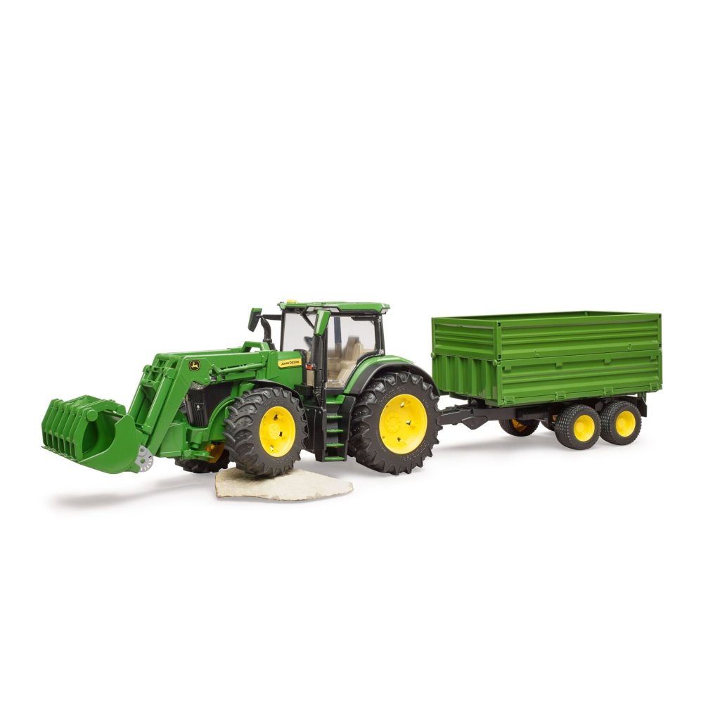 Moderní zemědělství si již nelze představit bez moderních traktorů. Protože práce zemědělců je nejen složitá, ale také plná výzev, potřebují správnou technologii. Traktory John Deere řady 7R: kombinace nízké celkové hmotnosti a vysokého výkonu. Tento agilní traktor nejen urychluje přepravu, ale také posouvá každou farmu vpřed. Tento traktor je u novinkou, kterou najdete v tematickém světě zemědělství. V souladu s mottem "Jako ve skutečnosti" je traktor vybaven mnoha realistickými detaily. Kapota se otevírá a odhaluje působivý motor. Dveře se dají otevřít a poskytují prostor pro volitelné figurky Bworld. Typickými vlastnostmi našich traktorů jsou vynikající ovladatelnost a komfort jízdy díky zabudované výkyvné nápravě a prodlouženému řízení, které lze použít přes posuvnou střechu. Za tento traktor lze připojit všechny přívěsy ze zemědělské řady BRUDER. Součástí této sady je také tandemový přívěs v barvě John Deere. Přívěs má funkci sklápění. Horní výklopné bočnice lze odejmout a spodní výklopné bočnice lze otevřít do 3 stran.