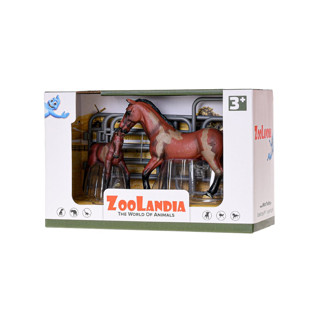 Sestav si svou vlastní farmu s plastovými figurkami z kolekce Zoolandia. Balení obsahuje koně s hříbětem a doplňky. Dostupné jsou 4 druhy - bílý s fleky, hnědý s fleky, světle hnědý, tmavě hnědý. Vhodné pro děti od 3 let.